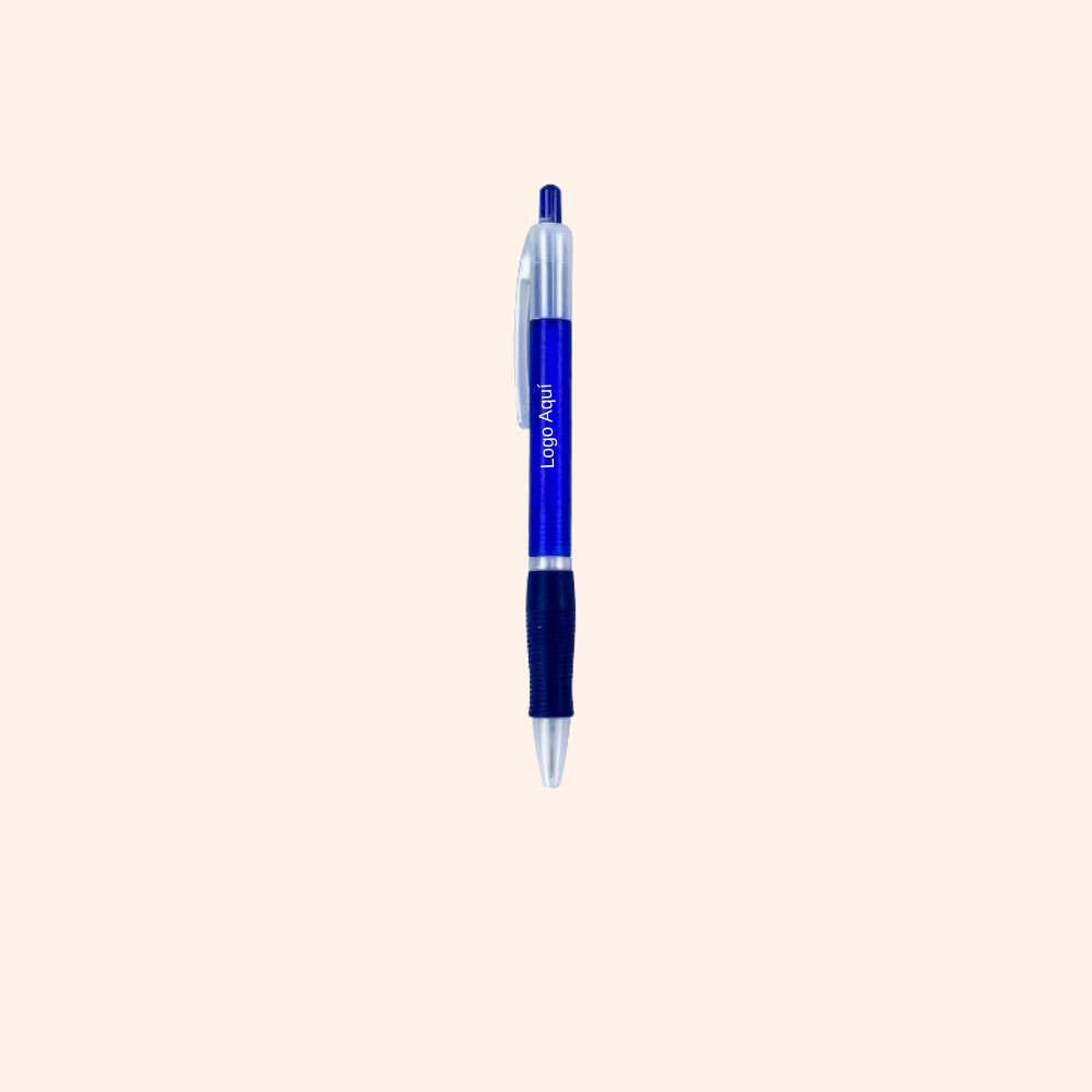 Promocional corporativo para tus clientes, lapicero cuerpo color azul con detalles de color gris, personaliza con logo a un color.